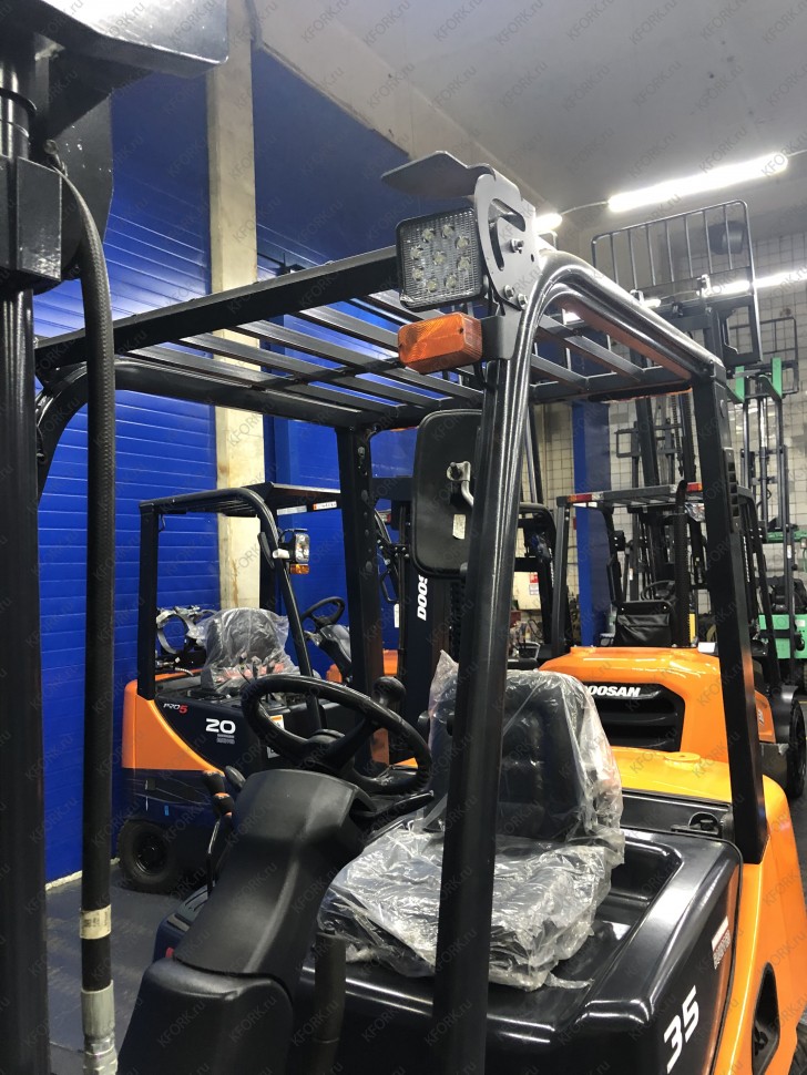 Дизельный автопогрузчик Doosan D35C-7 с инвентарным номером КМ098 2018 года выпуска. Имеет грузоподъемность 3500 кг. Гарантия: 3 мес или 500 м/час.